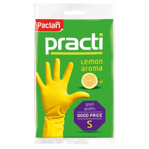Paclan Rękawice Gumowe do Sprzątania o Zapachu Cytrynowym – Rozmiar S – Ochrona i Komfort dla Mniejszych Dłoni