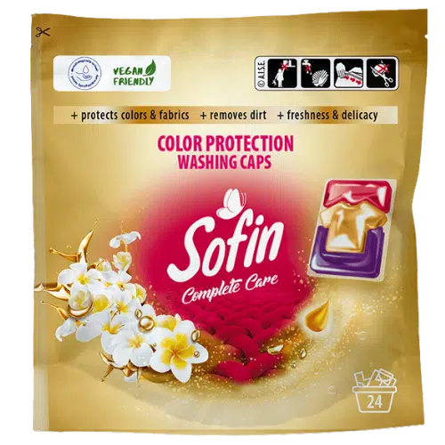 Sofin Kapsułki do Prania Kolor to wygodne i skuteczne rozwiązanie dla osób, które chcą kompleksowo zadbać o swoje kolorowe ubrania. Innowacyjna formuła kapsułek zapewnia wysoką skuteczność w usuwaniu plam, jednocześnie chroniąc intensywność barw. Dzięki temu Twoje tkaniny pozostają świeże, miękkie i pełne koloru nawet po wielu praniach. Produkt jest łatwy w zastosowaniu – wystarczy wrzucić kapsułkę do bębna, bez odmierzania detergentu.