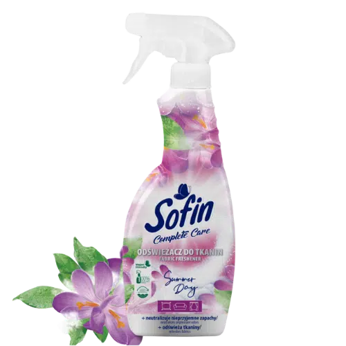 Sofin Odświeżacz do Tkanin Summer Day to idealny sposób na szybkie przywrócenie świeżości ubraniom i tekstyliom w całym domu. Jego zaawansowana formuła skutecznie neutralizuje nieprzyjemne zapachy, pozostawiając delikatny, letni aromat, który przywołuje ciepłe, słoneczne dni. Doskonale nadaje się do odświeżania odzieży, zasłon, kap, pościeli, tapicerek oraz innych tkanin wymagających odnowienia zapachu bez konieczności prania.