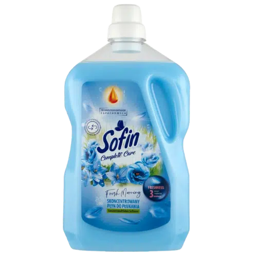 Sofin Fresh Morning to skoncentrowany płyn do płukania, który zapewnia Twoim ubraniom długotrwałą świeżość inspirowaną zapachem rześkiego poranka. Innowacyjna formuła zmiękcza tkaniny, chroni ich strukturę i ułatwia prasowanie. Dzięki właściwościom antystatycznym płyn zapobiega elektryzowaniu się ubrań, pozostawiając je przyjemne w dotyku. Duża pojemność 2,5 litra wystarcza nawet na 100 płukań, co czyni go ekonomicznym i praktycznym wyborem do codziennego użytku.