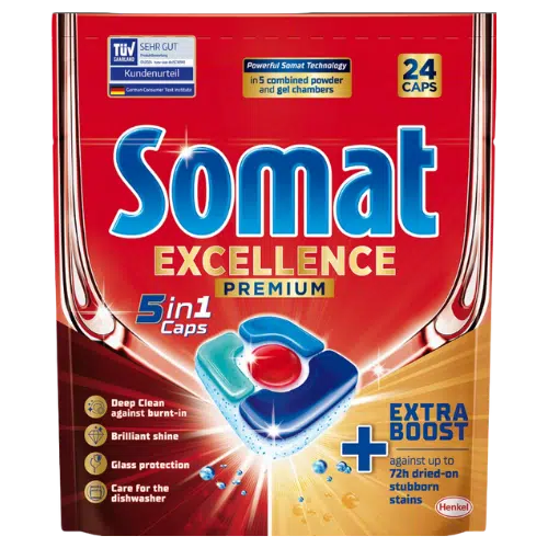 Somat Excellence Premium 5w1 Tabletki do Zmywarek 24 sztuki – Zaawansowana Technologia dla Perfekcyjnych Naczyń