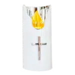 Dekoracyjny wkład do zniczy LED, zasilany bateriami, idealnie pasuje do większości szklanych i plastikowych zniczy. Emituje przyjemne, ciepłe światło, które w połączeniu ze złotymi dodatkami tworzy ekskluzywną i elegancką iluminację. Wkład ten nie nagrzewa się, dzięki czemu chroni znicze i ich plastikowe pokrywki przed uszkodzeniem.