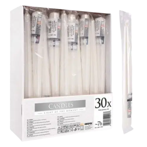 Aby uzyskać elegancki efekt, ustaw świece stożkowe Bispol Biały Perłowy w smukłych świecznikach o różnej wysokości. Połączenie kilku świec w centralnym punkcie stołu stworzy ciepłą i nastrojową atmosferę. Dla wyjątkowych okazji możesz dodać złote lub szklane akcenty, które pięknie odbiją światło świec, podkreślając ich perłowy połysk.