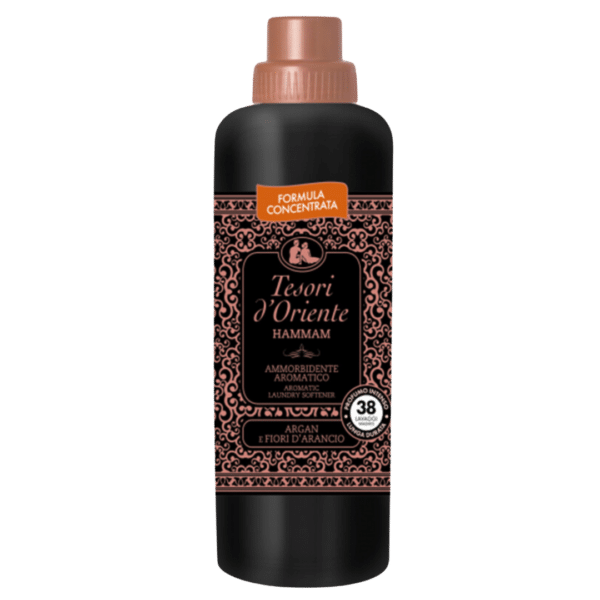 Tesori Płyn do Płukania Hammam 760 ml to wyjątkowy środek zmiękczający inspirowany bliskowschodnimi rytuałami Hammam. Nadaje tkaninom jedwabistą miękkość oraz otula je długotrwałym, orientalnym aromatem kojarzącym się z luksusowym spa i relaksem.