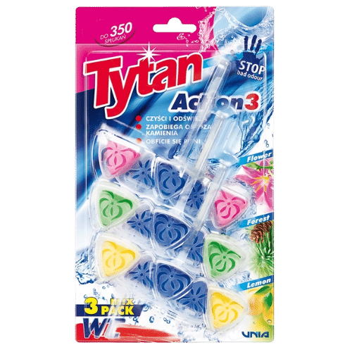 Tytan Kostka Do WC Action 3 Mix Pak 3x40g – Skuteczne Czyszczenie i Odświeżenie Toalety z Różnorodnymi Zapachami