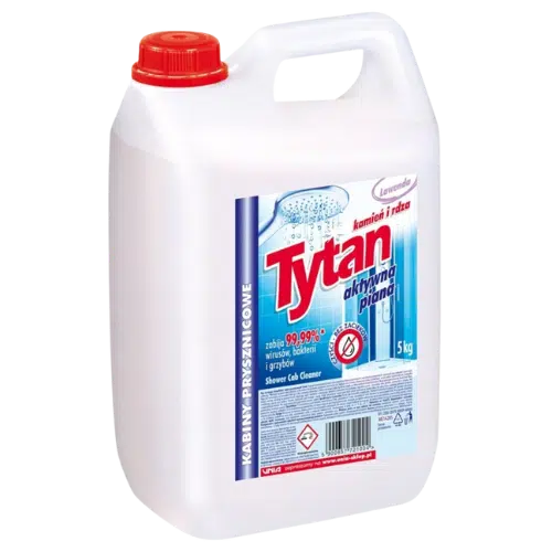 Tytan Płyn do Mycia i Dezynfekcji Kabin Prysznicowych 5kg to profesjonalny preparat stworzony do utrzymania higienicznej czystości w łazience. Jego silna, ale bezpieczna formuła skutecznie usuwa osady z mydła, kamień i zabrudzenia, jednocześnie eliminując bakterie oraz grzyby. Regularne stosowanie środka zapewnia długotrwałą świeżość, blask i ochronę powierzchni przed ponownym osadzaniem się brudu.