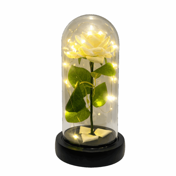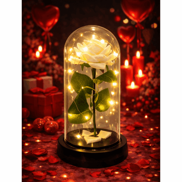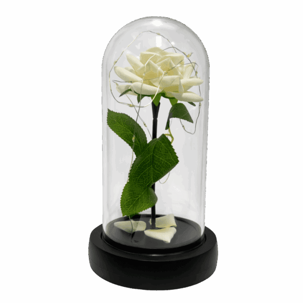 Wieczna biała róża LED w kopule – elegancka dekoracja i wyjątkowy prezent
