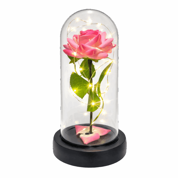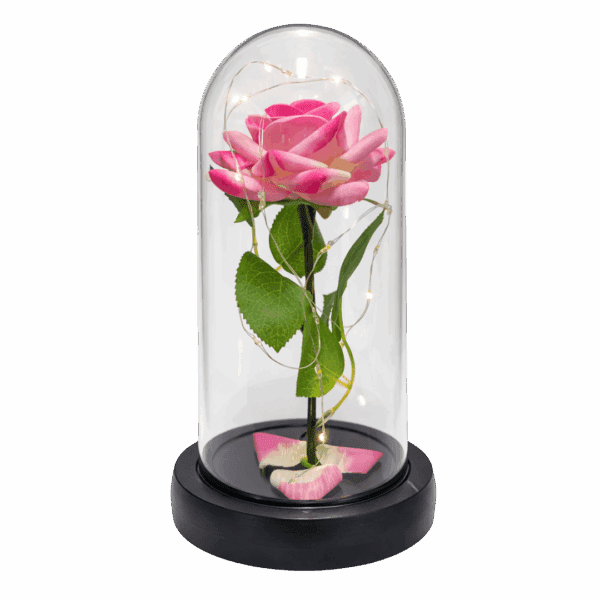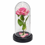 Wieczna róża w szklanej kopule LED to wyjątkowa dekoracja, która łączy w sobie romantyczny wygląd kwiatów z nowoczesną formą. Różowa róża, osadzona na plastikowej łodydze z liśćmi, została zamknięta w przezroczystej kopule, która chroni kompozycję i podkreśla jej elegancki charakter. Delikatne podświetlenie LED sprawia, że dekoracja pięknie prezentuje się zarówno w dzień, jak i wieczorem.