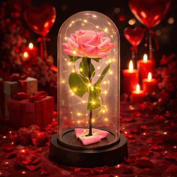 Wieczna róża w szklanej kopule LED – elegancki i ponadczasowy prezent