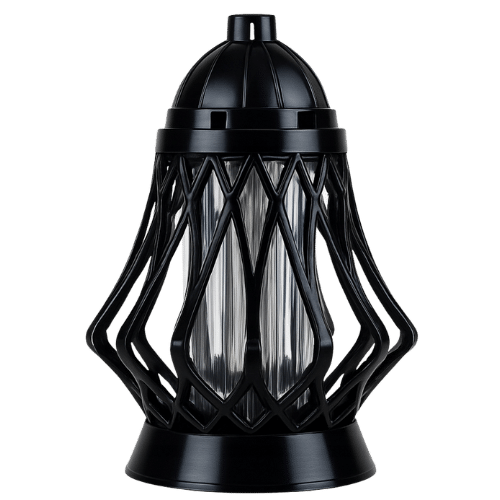 Znicz Ażur Duży w kolorze czarnym z przezroczystymi elementami to wyjątkowy model o nowoczesnej, ażurowej formie. Wykonany z trwałego tworzywa, łączy estetykę z praktycznością – przeźroczyste detale efektownie rozpraszają światło, tworząc nastrojową i spokojną poświatę.