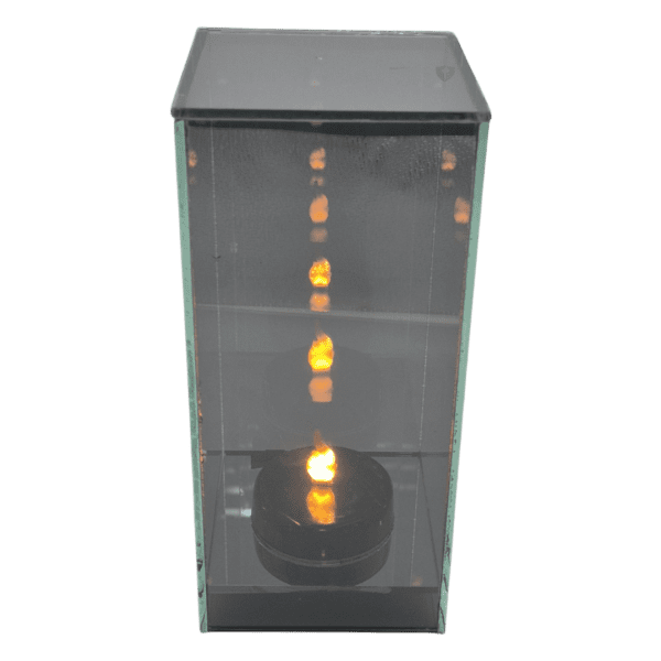 Szukasz wyjątkowego, na wskroś nowoczesnego symbolu pamięci, który przyciągnie wzrok swoją geometryczną elegancją? Szklany znicz w formie wysokiego, lustrzanego prostopadłościanu (22 cm) to propozycja dla osób ceniących innowacyjny design. Jego sekretem jest zastosowanie specjalnego systemu półprzepuszczalnych luster, które w połączeniu z dołączonym wkładem LED tworzą niesamowity, trójwymiarowy efekt “Infinity”. Pojedynczy płomyk powiela się pionowo, tworząc zjawiskowy tunel świetlny.