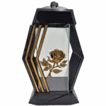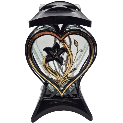 Znicz Szklany Muszla Lilia Złota to elegancki i symboliczny lampion nagrobny w formie serca. Wykonany z wysokiej jakości szkła i tworzywa, zdobiony złotą lilią, która dodaje mu wyjątkowej estetyki i podkreśla jego symboliczne znaczenie. Dzięki solidnemu wykonaniu i nowoczesnej formie znakomicie prezentuje się na nagrobku.