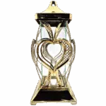 Znicz Szklany Serce Metalizacja Złoty to okazały i elegancki lampion nagrobny, który wyróżnia się wyjątkowym designem i symboliczną formą serca. Wykonany z trwałego szkła i tworzywa, ozdobiony złotą metalizacją, prezentuje się niezwykle efektownie i stanowi piękny wyraz pamięci o bliskich zmarłych.