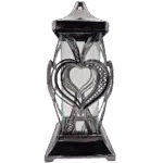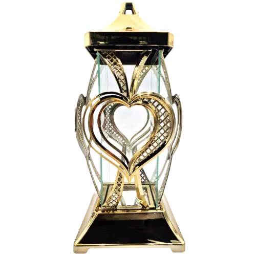 Znicz Szklany Serce Metalizacja Złoty 42 cm – Dostojny Lampion Pamięci