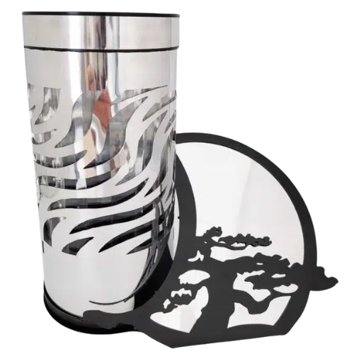 Znicz Solarny Bonsai – Srebrny to połączenie tradycyjnego stylu z nowoczesną technologią zasilania słonecznego. Wykonany z chromowanej stali z malowaną proszkowo podstawą, prezentuje się niezwykle elegancko i trwało. Po zmroku rozświetla się ciepłym, pomarańczowym światłem LED, które do złudzenia przypomina naturalny płomień – idealne, aby uczcić pamięć bliskich w wyjątkowy sposób.