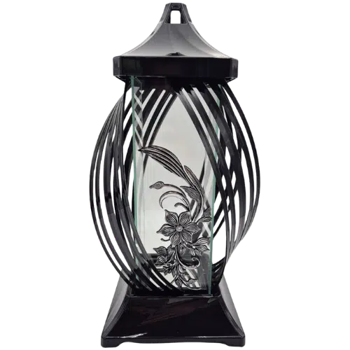 Znicz Szklany Wstęga Lilia Srebrna to elegancki lampion nagrobny w nowoczesnym kształcie wstęgi, wykonany z wysokiej jakości szkła i tworzywa sztucznego. Zdobiony dekoracyjną srebrną lilią, która podkreśla jego symboliczny charakter. Doskonały wybór dla osób pragnących w wyjątkowy sposób upamiętnić bliskich.