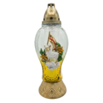 Szukasz znicza o głębokiej, wielkanocnej symbolice? Poznaj majestatyczny Znicz Jajko z Barankiem. Wyjątkowe, fakturowane szkło opalizujące mieni się wiosennymi barwami, a wypukła, srebrna aplikacja Baranka Wielkanocnego dodaje mu elegancji. Podstawa i kapturek z antycznego srebra tworzą szlachetną oprawę. Wybierz jakość i piękno w rozmiarze XXL (35 cm).