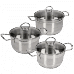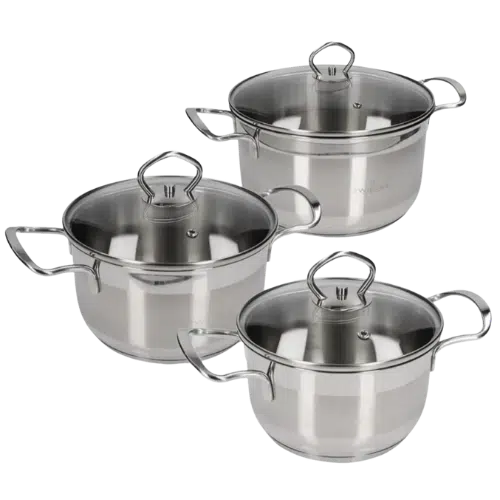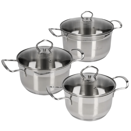Zestaw Zwieger Lovro 6 elementów to połączenie najwyższej jakości wykonania i nowoczesnego designu. Garnki zostały stworzone z wysokogatunkowej stali nierdzewnej AISI 304, która gwarantuje odporność na korozję, uszkodzenia mechaniczne oraz zachowanie pełnej neutralności w kontakcie z żywnością. Dzięki trójwarstwowemu dnu z aluminiowym dyskiem naczynia szybko i równomiernie się nagrzewają, oszczędzając energię i czas. Szklane pokrywki z otworami parowymi umożliwiają kontrolowane gotowanie, a grube ścianki oraz wzmocnione ranty zwiększają trwałość i stabilność termiczną. To komplet, który łączy elegancję z funkcjonalnością, idealny zarówno dla początkujących, jak i doświadczonych kucharzy.