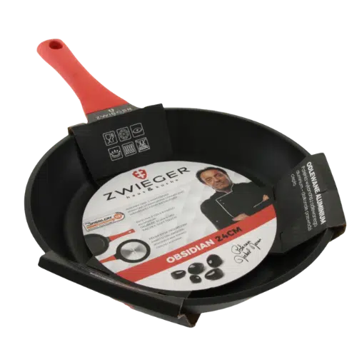 Dla miłośników mniejszych rozmiarów naczyń polecamy Zwieger Obsidian Patelnia 24 cm – idealną do przygotowywania mniejszych porcji lub dań dla jednej osoby.