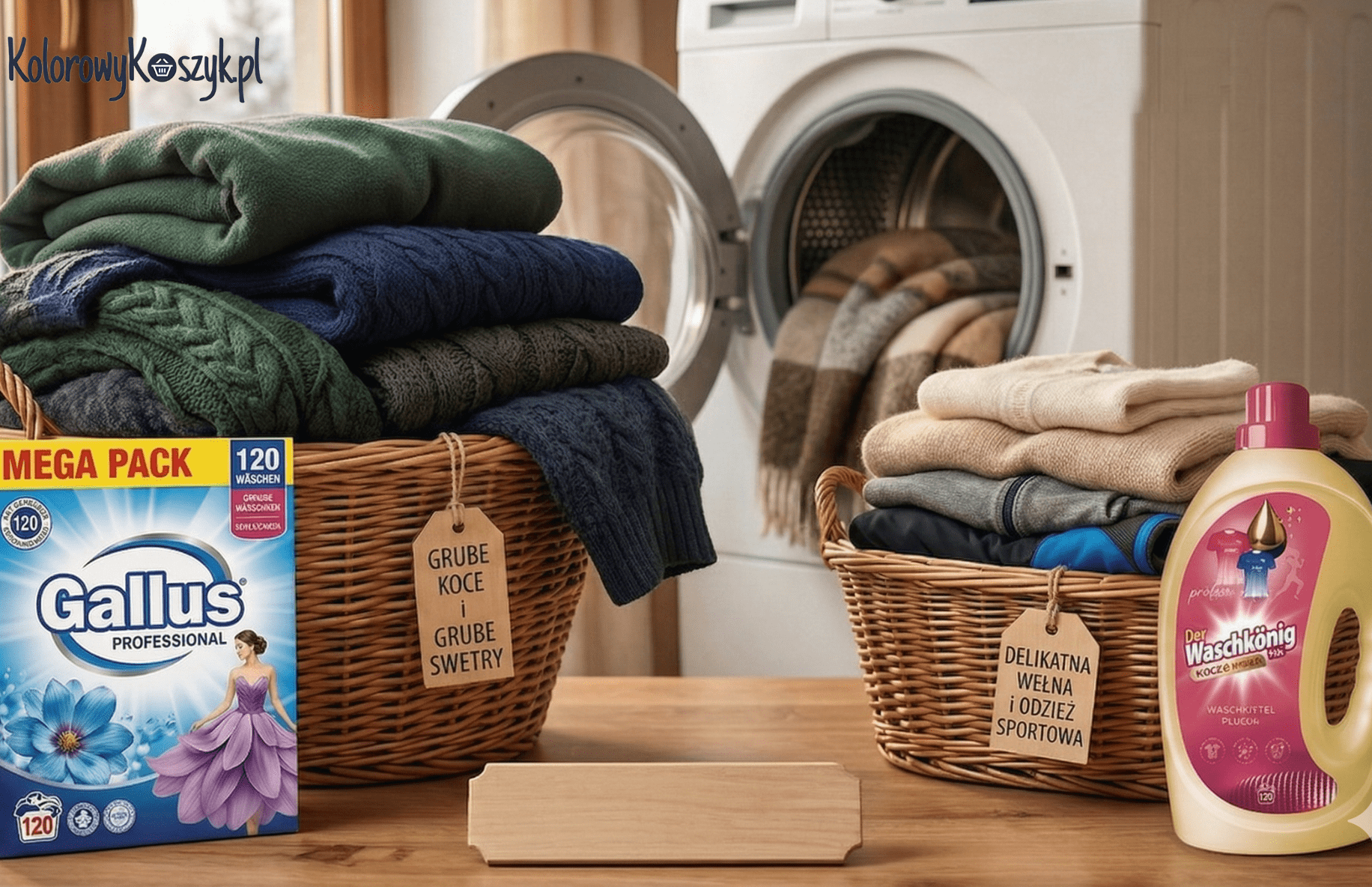 Mój wniosek: Do codziennej bawełny i wysokich temperatur z czystym sumieniem polecam wydajny proszek do prania uniwersalny Gallus Professional 4in1 6,6kg. Jednak przy grubych kocach i kurtkach, proszek stwarza ryzyko zacieków i uszkodzenia powłok wodoodpornych.